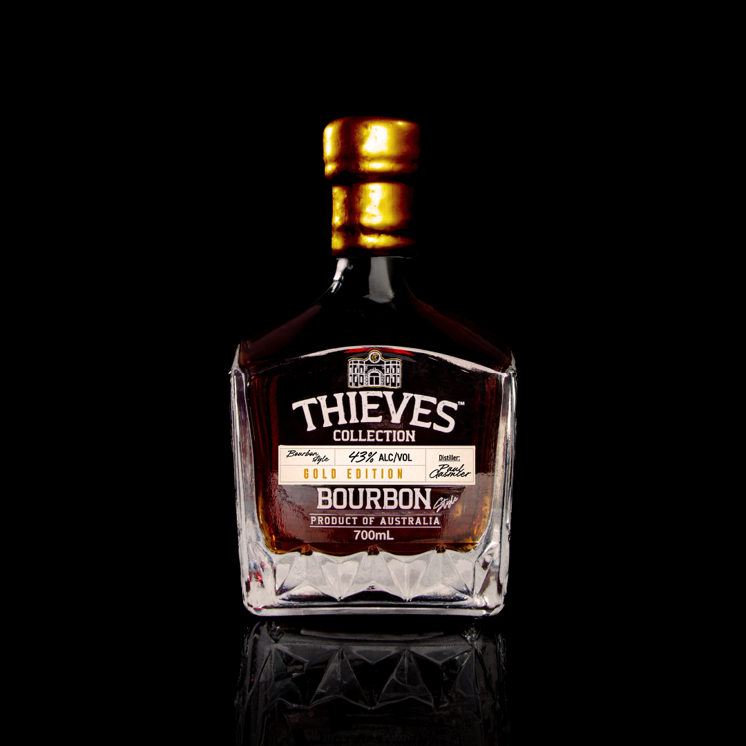 At 43% ABV, it's the perfect bourbon for everyday enjoyment. Whether served neat, over ice, or in your signature cocktail, Gold Bourbon offers a smooth entry into the Thieves Collection world of craft spirits.